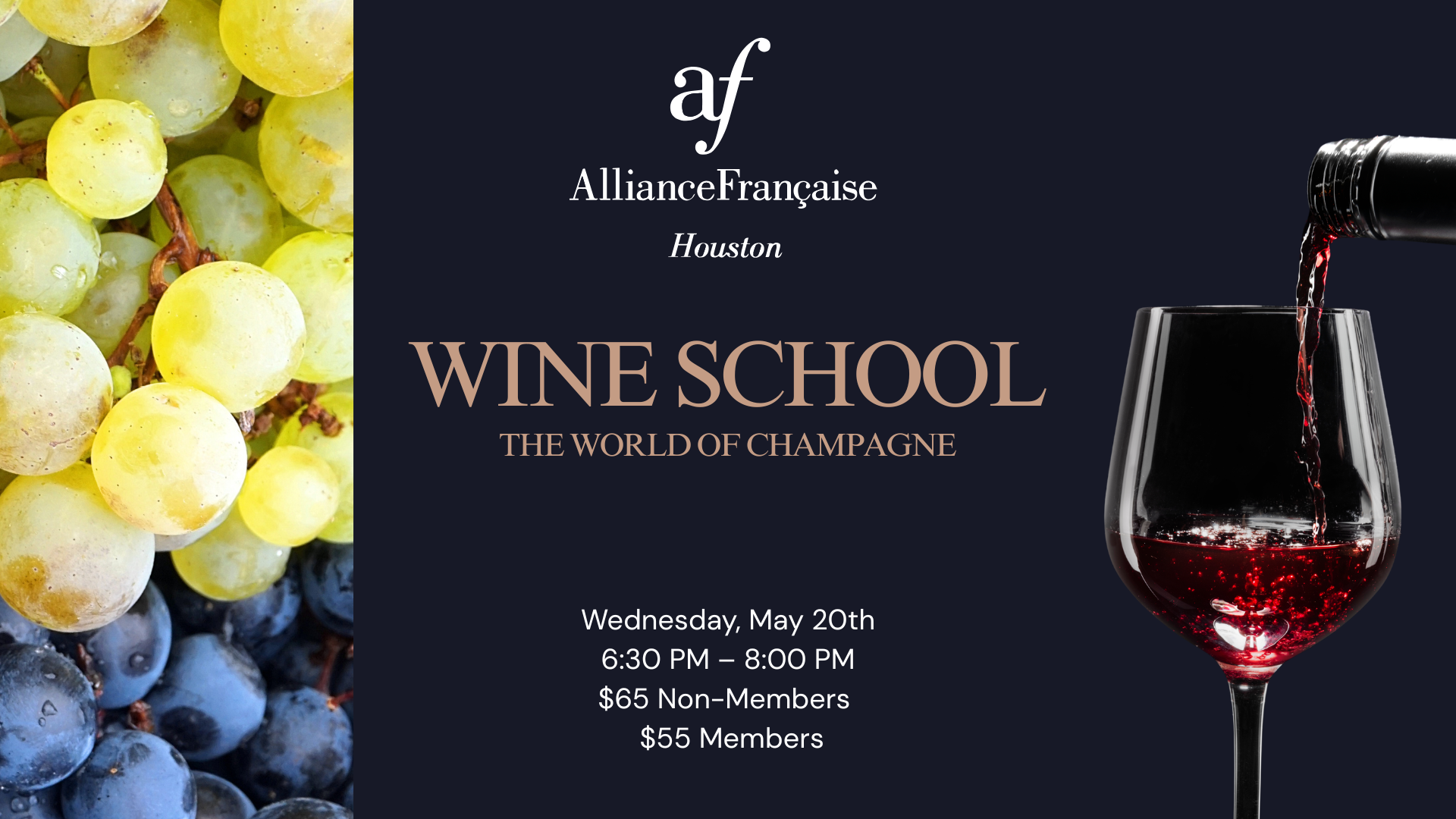 The Alliance Française of Houston cordially invites you to continue your wine education journey with our next Wine School class, dedicated to Champagne.