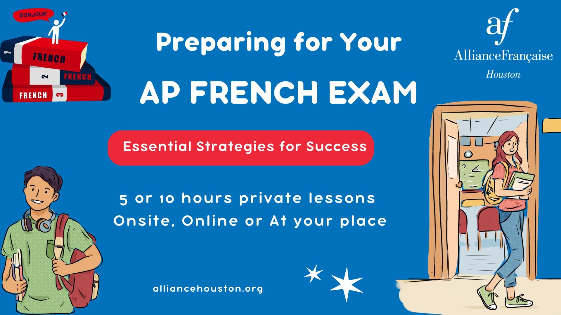 Prepare confidently for the AP® French Language and Culture Exam with our one-on-one private lessons, fully tailored to each student’s needs, level, and goals.